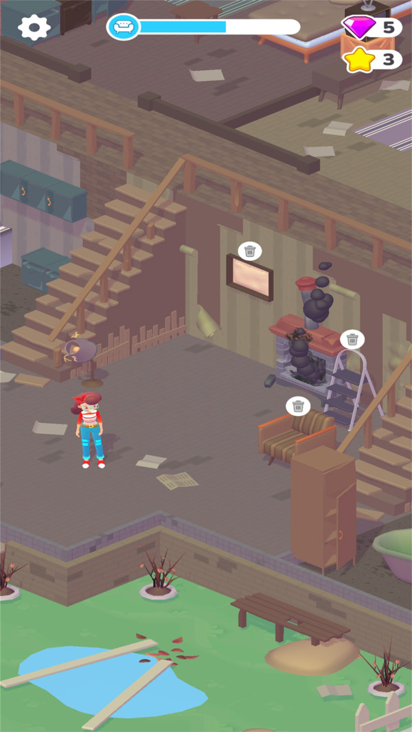主打个性化空间定制,涵盖卧室、厨房、浴室等六大功能区域。玩家可通过点选物品调出风格模板库,一键应用北欧、日式、童话等主题装饰方案。完成布置后支持高清截图存档,并可上传至社区动态页,与其他创作者交流搭配灵感与布局逻辑。
