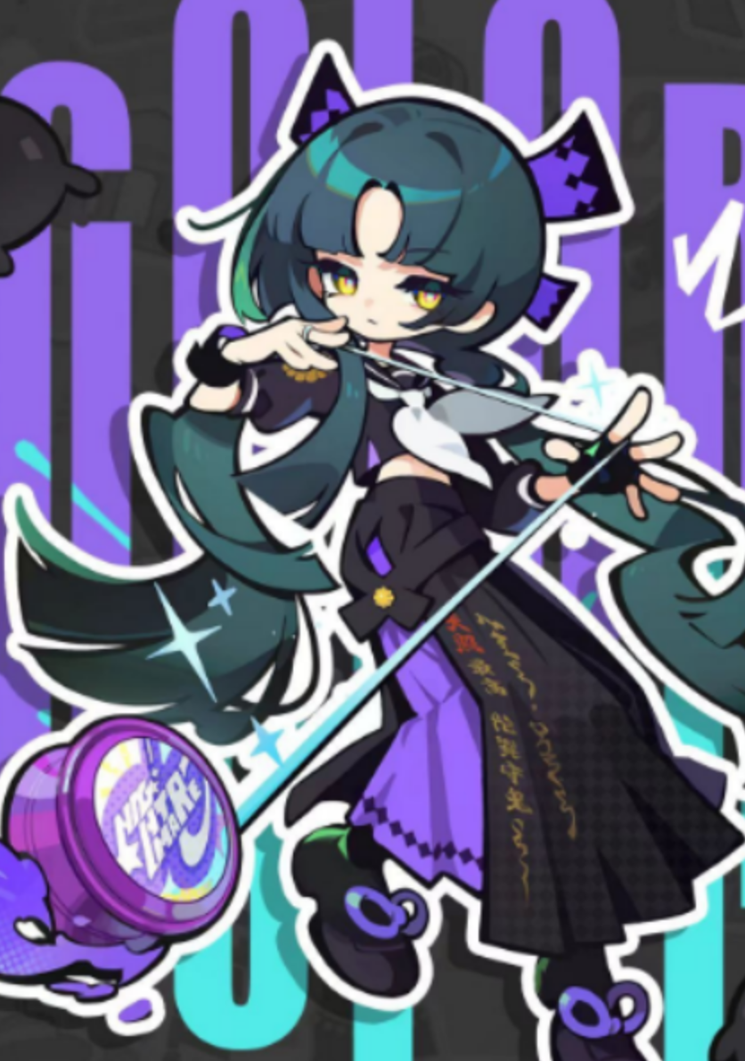 月读为紫色系高爆发输出型角色,身份设定为学生会副会长。其性格设定强调外向性与行动自主性,常以赛车竞速与社团实践体现角色活力。战斗层面,该角色以宽幅范围涂色机制触发连锁伤害,具备瞬时清场能力;技能可强制聚怪至屏幕中心并施加高额群体伤害,同时在造成输出的同时为全队提供能量回复,实现攻辅一体的战术闭环,在面对密集杂兵关卡时具有不可替代的效率优势。