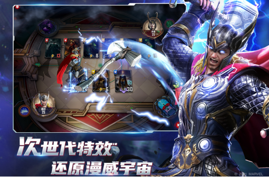 基于漫威宇宙正统世界观开发,英雄卡牌严格遵循原著能力设定,如钢铁侠科技系、雷神神域系、奇异博士咒文系等形成差异化阵营机制。战斗为自动进行但策略前置——卡组搭配、登场顺序、能量节奏决定全局走向,强调长期养成与战术预设。