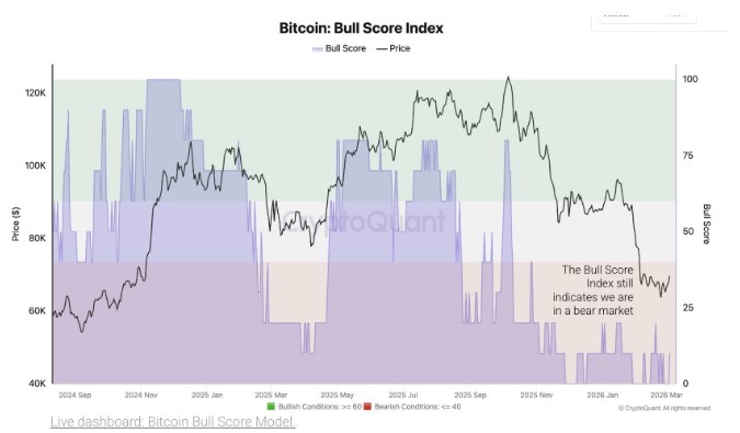 CryptoQuant牛势得分指数持续处于看跌区间(来源:CryptoQuant)