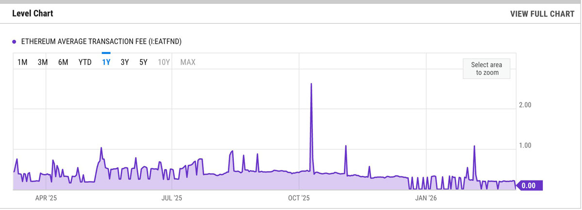 图4:以太坊平均交易手续费走势。来源:YCharts