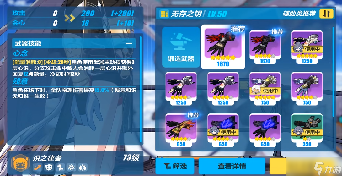 武器方面,无存之境意识是兼顾输出与辅助的毕业选择,提供暴击率与能量回复;若侧重辅助功能且面临能量循环压力,超限袖缠云因其主动技能能白嫖更多能量也是一个可考虑的选项。圣痕搭配需分场景讨论:在需要高频开启大招的辅助场景下,神州折剑套是综合性能优秀的毕业套装,词缀可考虑能量回复与减消耗;在乐土或短流程输出场景中,西琳升华上结合迪拉克中下(升迪迪)或整套升华圣痕能提供更高的暴击率与直接伤害加成。部分高阶玩法中也会采用糖泳牛组合应对特定环境。