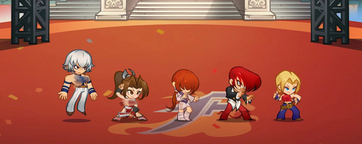 新手期推荐采用“控场压制+范围清线”体系:玛丽、八神庵、大蛇、夏尔美,搭配神乐千鹤或不知火舞任选其一。该组合强调前中期节奏掌控——八神庵与玛丽的大招具备强阵型压缩能力,夏尔美提供稳定群体眩晕,配合神乐千鹤的高频突进或不知火舞的爆发灼烧,可迅速瓦解敌方前排,形成局部人数优势。