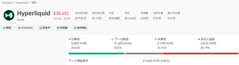 约21.66万HYPE待解锁