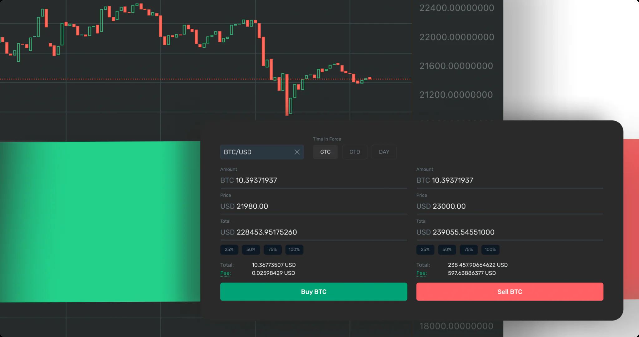 如果你想按当前市价买卖资产,只需在对应字段输入价格即可。系统会从上到下扫描订单簿来匹配。假设你想用市价单卖出5个比特币,而订单簿里有人愿以1万美元买3个,9900美元买4个——这是当时的最优买价。你的市价单会先吃掉3个(赚3万美金),再吃掉2个(赚19800美金),最后平均下来,每个比特币卖了9960美元,总共到手49800美金。