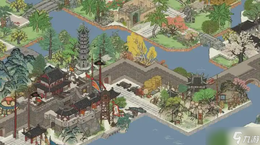 城墙外的布局需要兼顾实用性与美观度,可以根据城市的发展阶段和居民的人口数量,灵活调整建筑摆放方案。松树和竹子是城墙外最常用的绿化植物,能够与各类建筑自然融合,而城墙内则多用金色树木形成对比。通过巧妙利用河流分隔,城墙外的环境污染也不会波及对岸区域。这种分区布局的方式,能够让整座城市居民好感度更高,整体的产出也会增加。