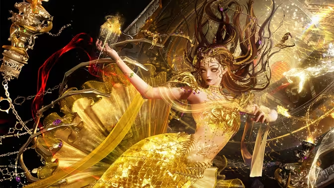 六星限定套装「湮世瞳华」作为三周年重磅献礼,以美杜莎神话为灵感,一套时装包含六种多形态,堪称技术力巅峰之作。