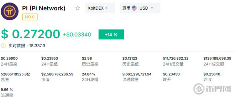 3月13日PI币价格触及0.299美元