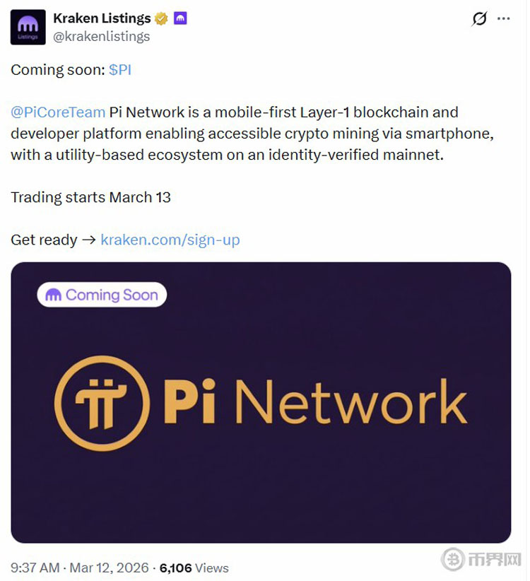 Kraken在3月13日上线PI现货交易