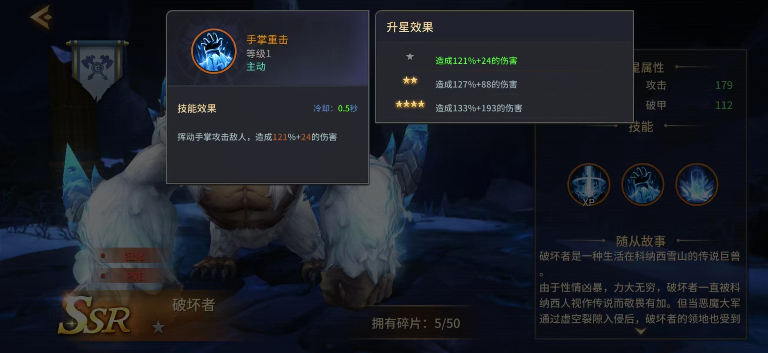 其一技能“手掌重击”为单体高势能打击,适用于快速清杂或打断关键目标动作;二技能“野蛮冲刺”具备位移+范围伤害双重特性,并附带60%概率触发2.5秒眩晕效果,是团队控场的重要支点;三技能“狂暴之血”释放后对周身敌人造成高额AOE伤害,并使自身进入10秒狂暴状态,攻速提升,升星后最高可叠加26%攻速加成。该组合使其在PVE副本、BOSS攻坚等长线战斗中表现稳定且输出可观。