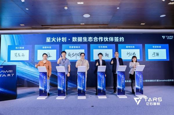 发布会签约仪式上,丁文超博士代表它石智航,与百度智能云、幂特科技、无问智科、恺望数据、柏川数据、际数科技正式签署合作,各方将在具身数据交易、采集体系建设及模型评估等核心领域展开合作并加入“具身数据星火计划”,持续推进以它石Human Centric为核心的工业级数采方案落地验证,以开放的合作共同激活产业潜能。
