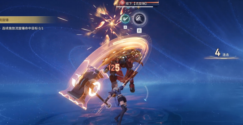 三技能“流转锤”将武器化为重锤,分两段发动强力范围攻击,是主要爆发输出手段之一。