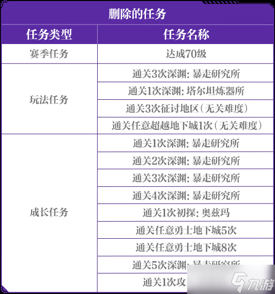 更新后,“删除的任务”会移除,完成对应新增的任务可获得相同奖励。例如,“达成70级”任务被删除后,新添加“达成80级”任务。即使已领取过“达成70级”的奖励,完成“达成80级”任务,也可领取相同的奖励。