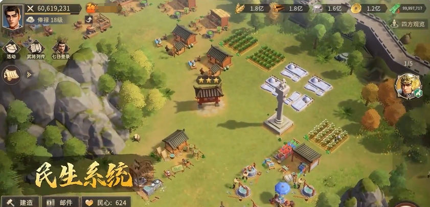 培养上面武将技能升级最好参考主3次1,2的原则,强化主动技能的性价比最高,保证自己有足够的输出爆发力,还有民心数值大家想要获取更多的话,也可以从布局上面入手,比如用伐木场挨着树林,田庄挨着河流放,石场放在山脉上,并在附近设置对应仓库建筑,这样就可以获取最多的民心数值,野外作战的时候大家也要学会利用地形来卡位,保证自己主力部队的战力不受影响,前期能够占领铁矿一定要先去占领,这在后期需求量是很大的。