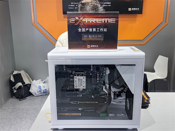全国产工作站,由海光C86 3490处理器搭配砺算LX PRO显卡组成。