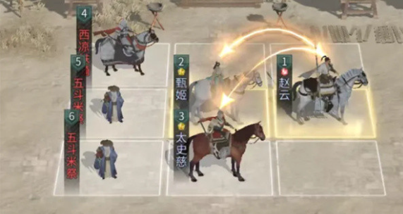 在布阵时也需要注意细节,英雄站位里面太史慈不要站在追击格。赵云要站在太史慈的追击格上,同时还要和甄姬互战追击格,这样才能有效发挥三个人的追击。兵种的搭配也有讲究,第1行的末尾就可以放西凉铁骑。太史慈还有甄姬的后面都可以摆上一个五斗米祭,可以负责辅助续航,让整个阵容的攻防更加的均衡。三个武将的技能搭配是固定的,照着搭配肯定不会出错。甄姬的主动技能还有被动技能都会带有凌波微步,可以奶队友,还可以增加闪避率。