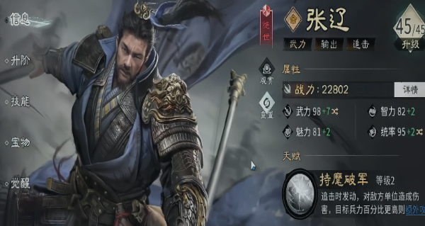 阵容战斗力的搭配很轻松,需要将辅助还有输出放在一起。马超主要是单体爆发,还有持续压制,早已是队伍中的单点输出核心。被动技能可以降低敌方的防御,在打高护甲名将时就会拥有更好的效果。张辽就是全队的输出担当,有爆发,还有技能覆盖率,主动技能可以针对敌方的前排造成额外的伤害。和自身的天赋就可以完美地协同在一起,能轻松地缓解在清理现场时的压力。被动技能结合白虹贯日,20%的暴击率加成,就可以让关键回合的伤害更加的爆炸。