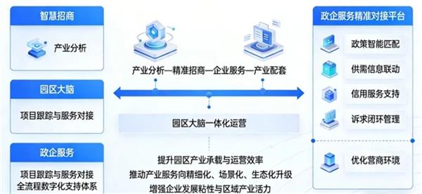 依托数据驱动的要素供需匹配与动态调度机制,系统提升土地、资本、人才等关键资源利用效率;结合企业精准画像与需求分析,实现政策精准推送、服务主动触达、问题闭环处置,有效激发市场主体活力。