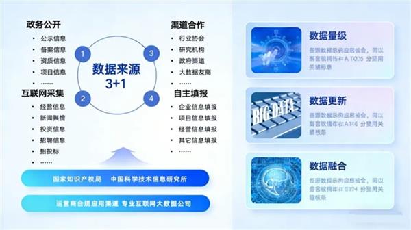 ·汇聚政务公开、互联网采集、合作渠道、企业自主填报等“3+1”数据来源,形成全域融合的数据资源池。