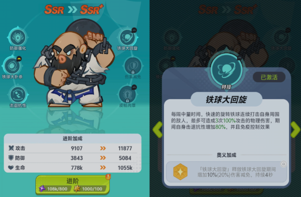 零级时就可以给敌方大范围造成600%的物理性伤害。虽然说在每一次击中敌人之后都会衰减12%的伤害,但是4次强化之后就会有更出色的伤害能力。在开团的时候释放一个,不仅可以打出伤害,还可以保护自己。进阶解锁的铁球大回旋更加的厉害,每相隔一段时间就可以直接打周围的敌人。三次100攻击的物理性伤害真的不算什么,关键是在释放期间,80%的击退抗性加上免疫控制,那自然就会拥有更好的优势性。所以选择陈国汉真的还是比较有优势性的。