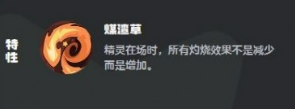 其核心机制“煤渣草”特性具有明确触发条件:当技能栏中存在至少一个火系技能时,所有草系技能命中后将额外为对手施加2层灼烧效果。因此最优配招逻辑为“1火+3草”,使每一次草系输出均能高效推进灼烧层数积累,形成稳定的DOT(持续伤害)滚雪球效应。