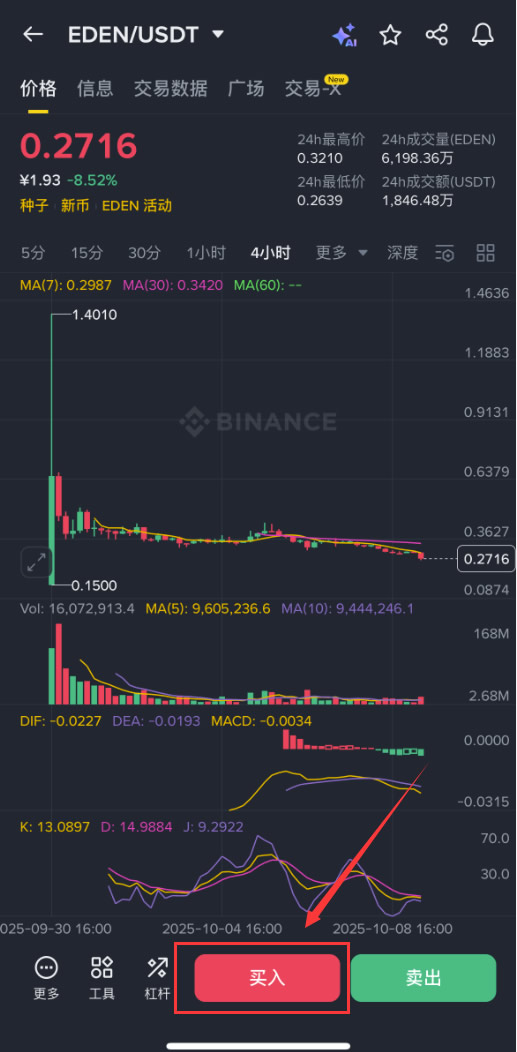 下面以币安为例,为大家演示EDEN币购买步骤教程。
