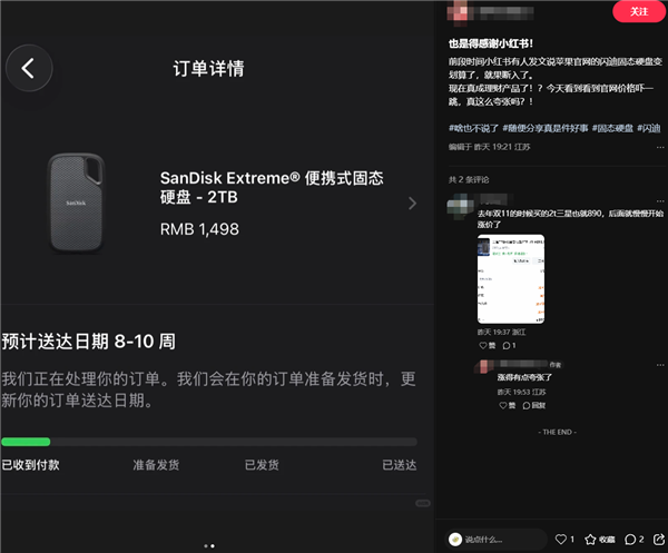 其中,1TB版本售价998元、2TB版本1498元,在当下行情下性价比十分突出,迅速引发用户抢购,2TB版本更是被直接买到断货。