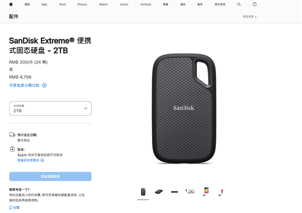 不过,近期有网友发现,在一片涨价潮中,苹果官网在售的第三方品牌闪迪便携式SSD一度“按兵不动”。