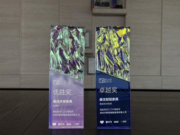 时间:2026-03-18 | 作者: | 阅读:03月15日,在深圳国际家具展期间举办的第四届质点奖颁奖典礼上,联美科技旗下智慧睡眠品牌CCOO自在凭借过硬的产品实力与绿色发展理念,荣获“最佳智能家具”与“最佳环保家具”两项大奖,获得行业权威认可。
