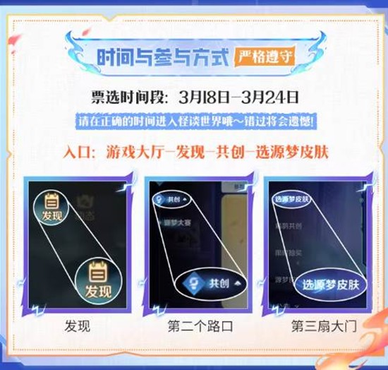游戏内:点击大厅【发现】-【共创】-【选源梦皮肤】