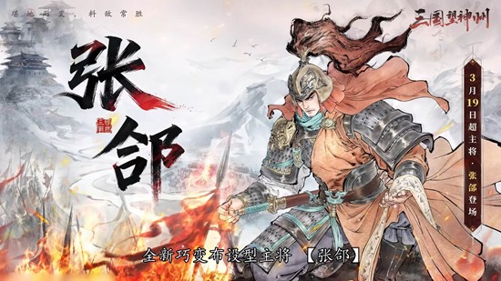 3月19日版本更新后,超主将张郃将正式加入《三国:望神州》的将魂图谱。作为强力的长兵/短兵系主将,张郃的登场无疑将为现有战术体系注入新的活力。得此名将相助,明公们定能在疆场之上更加挥洒自如,横扫千军、平定天下的霸业之路也将更加顺畅。