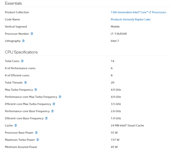 眼下,酷睿Ultra 300系列都发布了,针对高端游戏本也更新了酷睿Ultra 9 290HX Plus、酷睿Ultra 7 270HX Plus,但是在Intel官网产品库中,突然出现了一款“酷睿i7-13645HX”。
