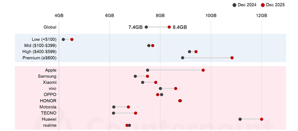 时间:2026-03-19 | 作者: | 阅读:0研究机构Counterpoint Research周四发布的报告显示,尽管整个智能手机行业都在面对内存价格暴涨的压力,但厂商之间的悲欢并不相通。