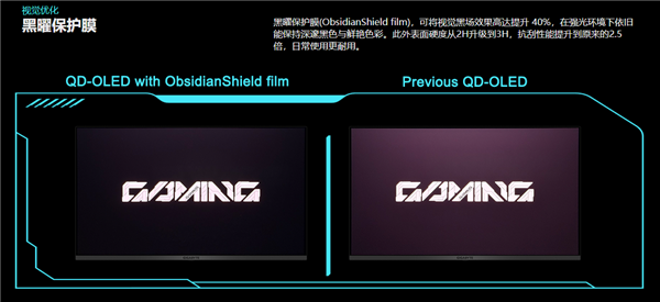 MO32U24 电竞显示器透过面板 ObsidianShield 抗反射涂层技术,最高可提升 40% 感知黑色表现,即使在强烈环境光下仍能呈现深邃黑色与亮丽色彩。屏幕表面硬度则由 2H 升级至 3H,提供 2.5 倍防刮能力,强化日常使用耐用性。此款屏幕更通过 VESA ClearMR 13000 认证,具备 0.03ms GTG 极速响应时间,有效降低动态模糊;搭配 VESA DisplayHDR True Black 500 认证、99% DCI-P3 广色域,呈现更细腻且贴近真实的影像层次。