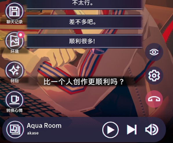 少女就会用温柔的声音为你朗读诗词,不会有太多的打扰,只是给你带来一份安心。要想提升彼此之间的信任心,那就可以通过点击屏幕去完成对话,连续完成专注目标之后,还可以解锁手写的便签系统,轻松触发碎片化的剧情,让整个陪伴会更有仪式感。场景,还有音乐效果的定制,也是这款游戏主要的亮点,玩家可以自由的搭配原创音乐,打造一个专属的空间。还能自由的去调节音量的比例,甚至可以关掉音乐。