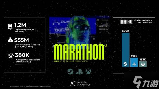Rhyss Elliott还拿《失落星船:马拉松》和去年的搜打撤黑马《Arc Raiders》做了横向对比,该作在年初时销量已达1200万份。当然,《Arc Raiders》的发售时间更早,但即便如此,《失落星船:马拉松》的销售速度依旧不及《Arc Raiders》,后者在一周内销量预估已有160万,而前者发售至今已半月有余。