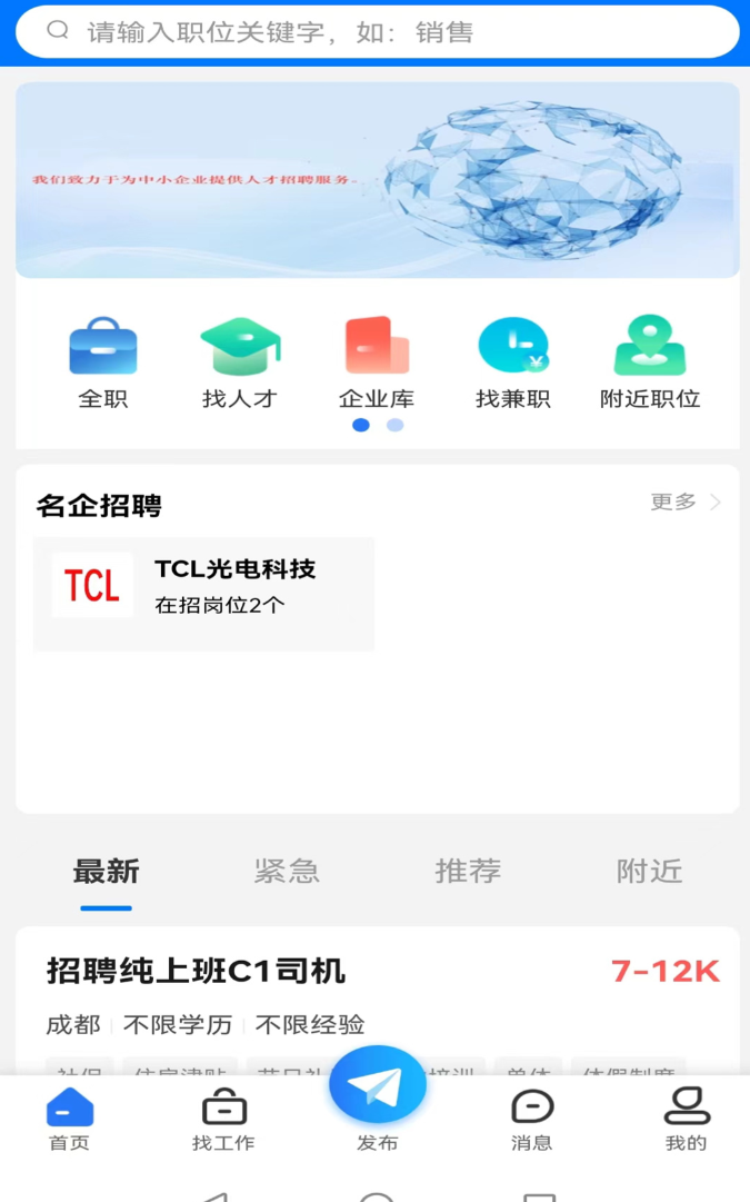 深耕西南区域人力资源市场,已吸引近20万家本地企业注册,累计发布有效职位超120万个。所有招聘主体均经人工资质复核,同步构建企业信用评分体系,不良记录企业无法上线。求职者可通过“简历刷新”功能提升在HR端的可见度,投递进度状态实时同步,避免信息盲区。服务范围覆盖成都市主城区及天府新区、龙泉驿、温江等重点产业聚集区,涵盖制造业普工、餐饮服务、物流运输、软件开发等十五大行业类别。