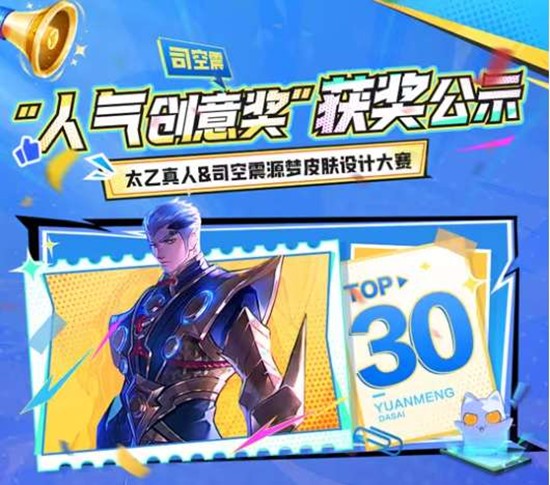 本次源梦大赛采用双英雄并行赛制,针对司空震与太乙真人两位英雄分别开启设计征集。在首轮投票中,两个赛道各产生30幅人气佳作,共计60幅作品凭借出色的创意与设计获得"人气创意奖",并顺利进入下一轮官方评审。