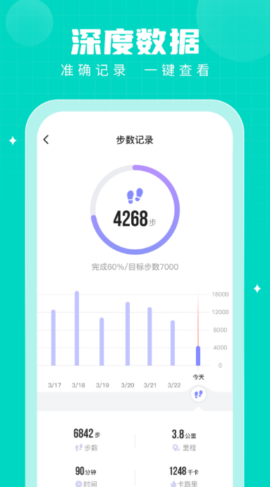 主打轻量化运行体验,无需穿戴设备,仅凭手机即可实现全天候运动追踪,后台耗电水平接近日常通话十分钟,续航压力小。其体感识别模块支持开合跳、深蹲、仰卧起坐等常见动作捕捉,实时语音纠正姿态偏差;同步集成PM2.5吸入量估算模型,结合地理位置与运动路径生成空气质量预警,便于户外锻炼前合理规划时段。