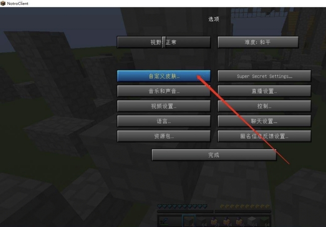 在选项设置界面中,将视线移至“皮肤自定义”分类。