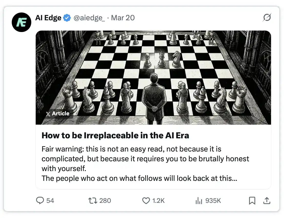 很多情况下,你只需要在 X 上积累 1,000–10,000 名关注者,就已经足以获得高价的 AI 相关机会(咨询、副业等)。