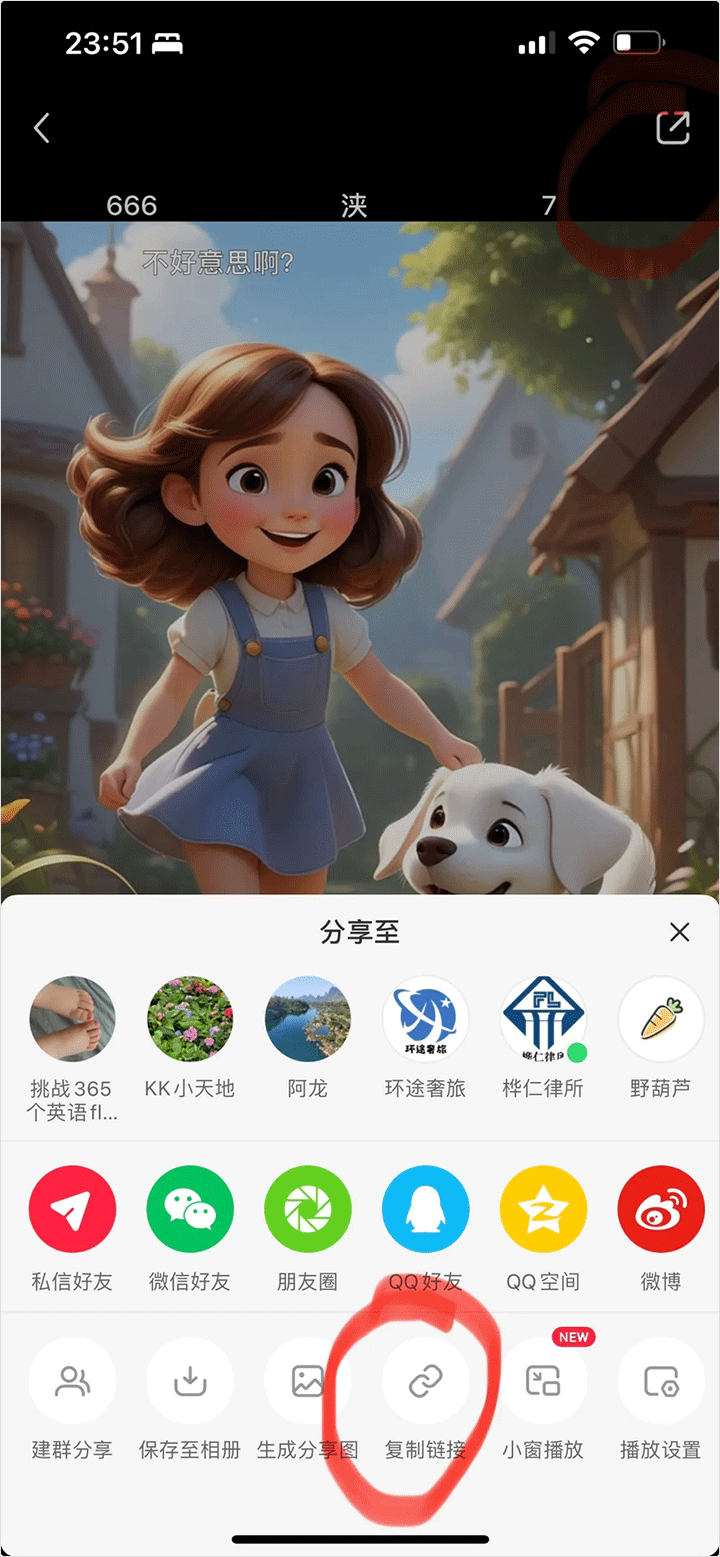 1. 点击视频右下方的“分享”图标。