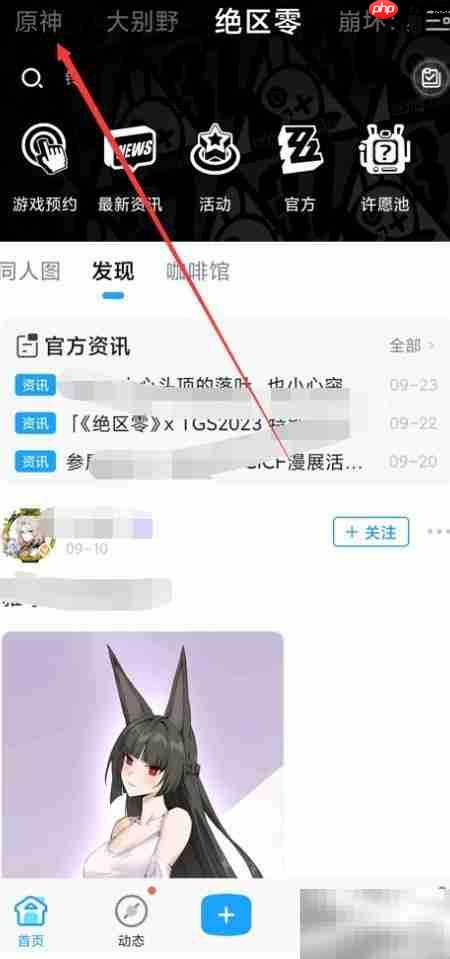 成功进入米游社首页后,留意一下左上角。轻触那个醒目的【原神】专属入口,这是通往所有原神相关内容的快速通道。