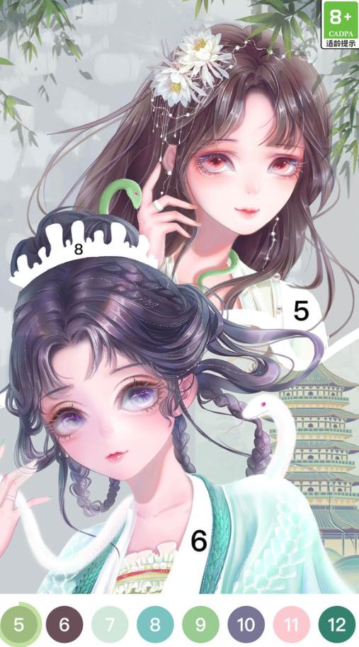 融合国风美学与二次元视觉语言,主打数字编码填色模式——画面中每个区块标注对应色号,玩家依序填充即可还原古韵插画。同步提供像素格点填色与无约束自由创作两大分支玩法:前者强化逻辑辨识,后者支持自定义调色与本地存档,满足从启蒙到进阶的多阶段成长需求。