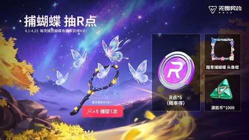 免费送R点、暮蝶盖可卡面,4月3日起上线即领!踏青捕蝴蝶头像框、挂饰、喷漆,还有海量赛季币、源能币等你拿。春风携好礼,瓦手里相遇!