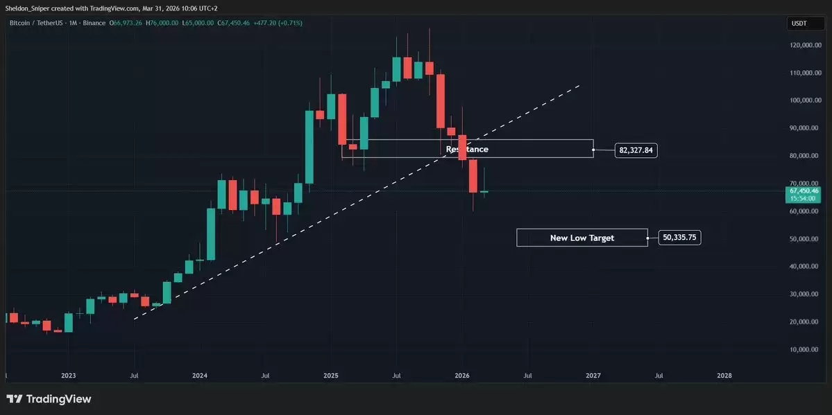 (图片说明:BTC/USD月线图。来源:X/谢尔顿·迪德里克斯)