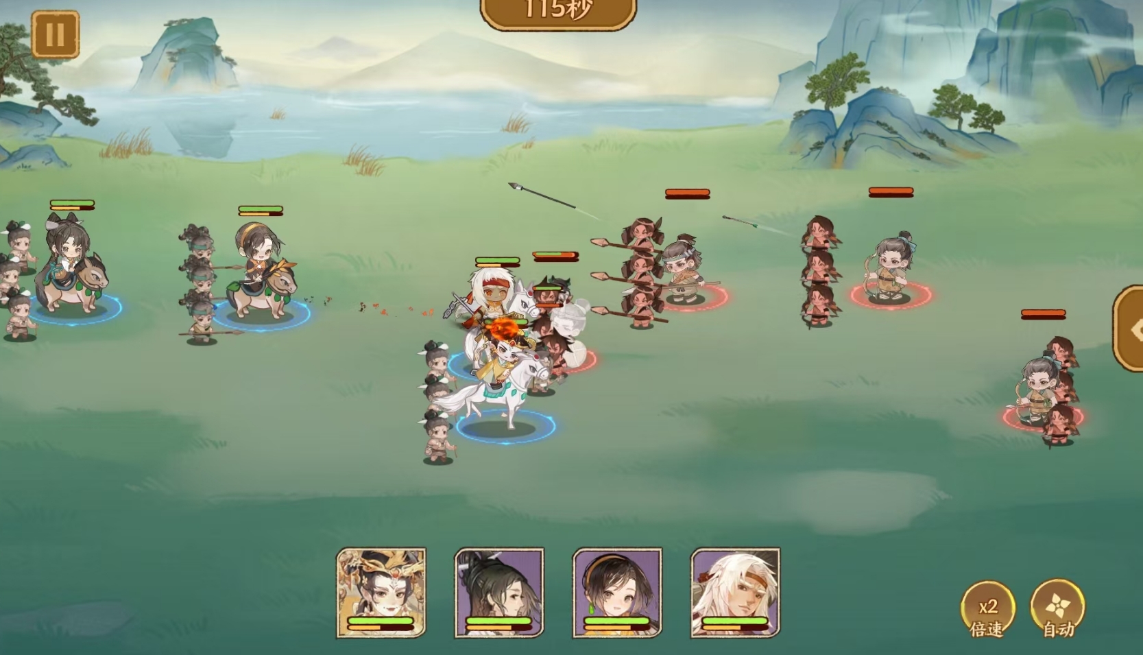 触发战斗后,各位会进入战斗准备阶段,此阶段中可对阵容进行调整,安排出战名士的人数等。最开始时各位只能上两位名士,但只要跟着剧情走,令主角的等级得到提升,就能将更多名士编入战斗,最高可编入五位,完成编入后开启挑战就能正式进入战斗。华夏绘世录的战斗可点自动让AI全程进行托管,也可取消自动由玩家去决定角色放大招的时机。想要战斗节奏变快时,亦可开启倍速来加快。等名士们将战场上的所有敌人都消灭掉后,即可赢下战斗的胜利,同时也能拿到参与战斗带来的收益。