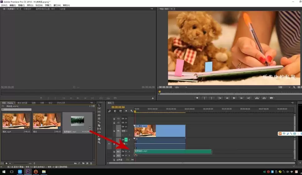 找到你挑选好的背景音乐文件,同样用拖拽的方式,将其放到时间轴下方的音频轨道上。