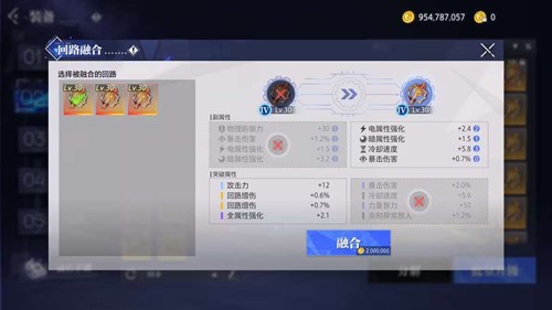 融合条件:需选择主属性一致的突破ⅣLv.30永恒回路进行融合。