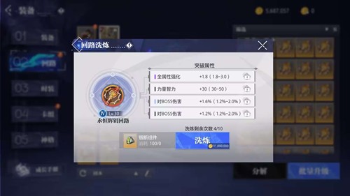 当永恒回路达到Lv.30满级后,将解锁"洗炼"功能: